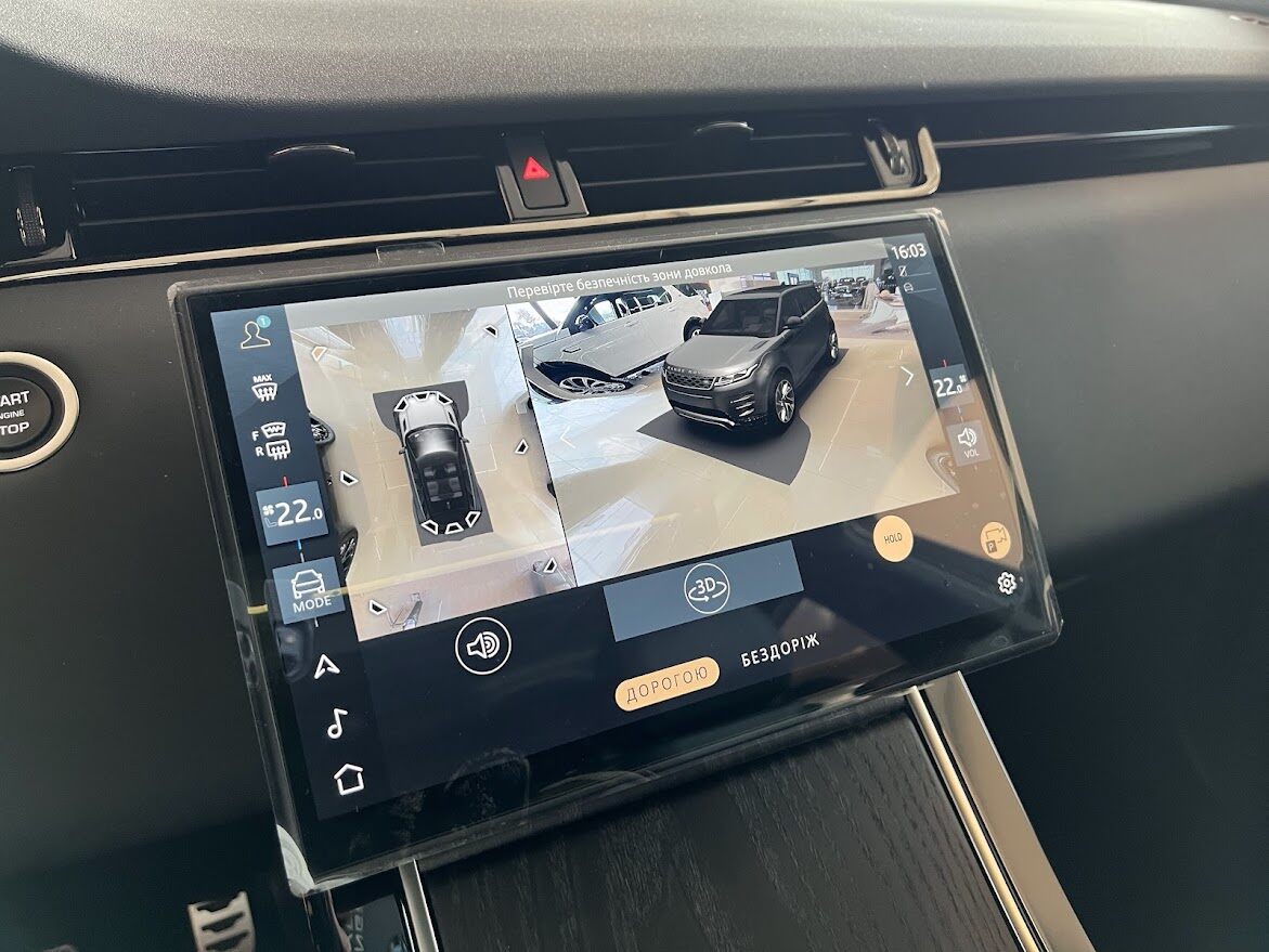 Інтер’єр Evoque вирізняється високою технологічністю, що відчувається у кожному елементі управління. Цифрова віртуальна панель приладів та аудіосистема Meridian™ забезпечують сучасний мультимедійний досвід і зручність під час керування. Завдяки системі безключового доступу та інтегрованим камерам 3D автомобіль пропонує інтелектуальні рішення для щоденного комфорту та безпеки.